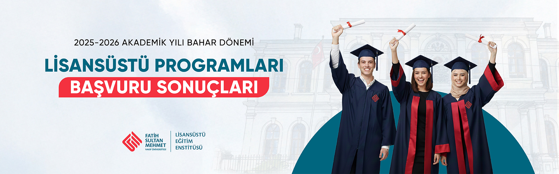 2024 yılı Kasım ayının ilk haftasında Lisansüstü mezuniyet töreni tertip etmek istiyoruz. Siz değerli tüm mezunlarımızın katılımına açık olan mezuniyet töreninin tarihi ilerleyen günlerde duyurulacaktır.