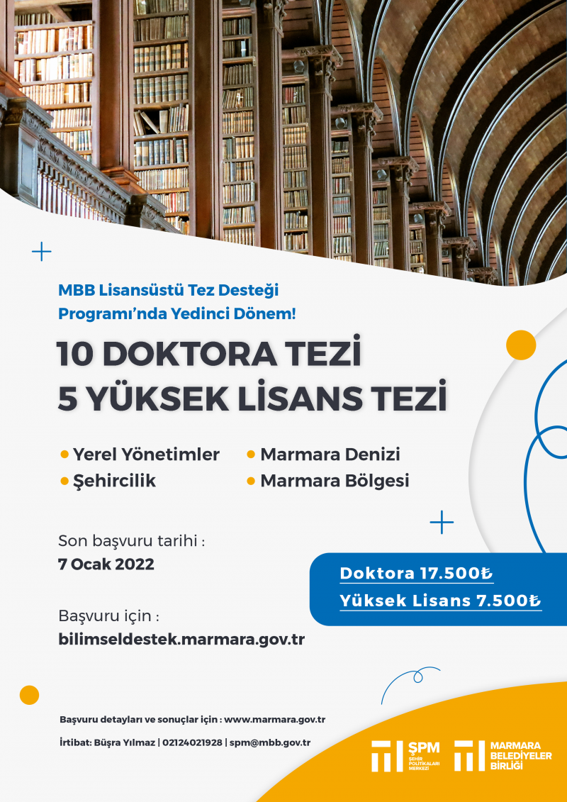 Marmara Belediyeler Birliği (MBB) Şehir Politikaları Merkezi'nin lisansüstü tez destek programı duyurusu için tıklayınız.